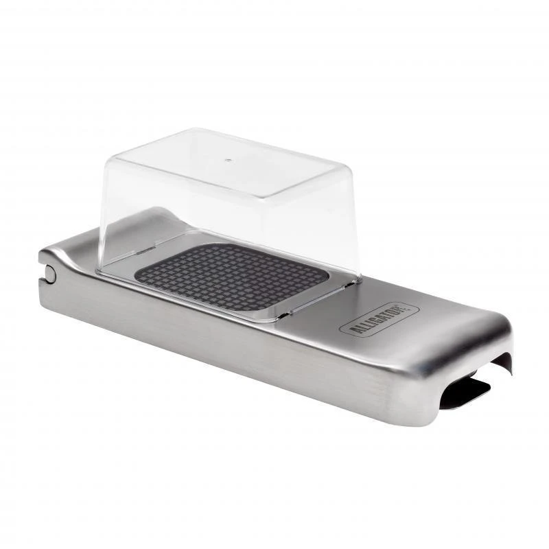 The Alligator Stainless Steel Chopper is a must-have wonder in the home and professional kitchens. It is simple to use, effectively cuts, and is exceedingly durable. While the secret is already out with top chefs in many fine kitchens around the world, we are proud to exclusively offer you this and many other modern kitchen cutting tools. The Alligator Stainless Steel Chopper is an exclusive model in stainless steel equipped with three interchangeable knife sets, a standard 6 x 6 mm set for items such as onions, a 12 x 12 mm knife grid for chopping thicker items such as french fries, and a 3 x 3 mm set for chopping smaller items such as garlic.