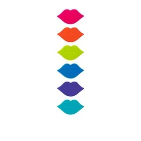 - Set of six lip-shaped markers in different vibrant colours made of durable silicone