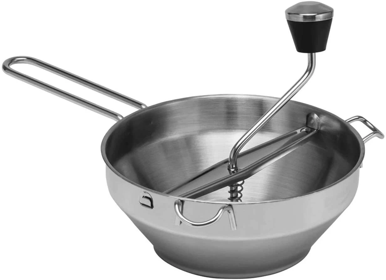 Avanti Rotary Food Mill with 3 Discs makes natural baby food, purees, soups, lump-free sauces, and more. Ideal for pureeing and grating cooked vegetables and fruit to create small amounts of baby food, sauces, or fancy toppings for a special meal. It is designed to give you the best possible result with minimum effort. Constructed from durable stainless steel. This compact mill has three interchangeable fine, medium, and coarse disc blades and features two resting handles for stability.