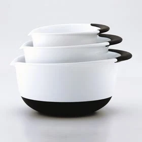 Spin that whisk around just as vigorously as you like with the Oxo Good Grips Mixing Bowl. The non-slip bottom and easy-to-grip handles create stability so you don’t need to nurse it on your knee or in the crook of your arm – we all know where that leads: a one-way ticket to crampsville, that’s where!