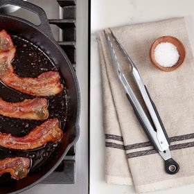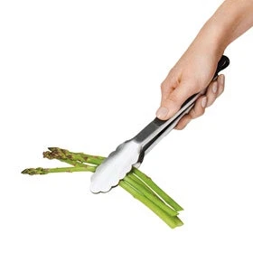 These sharp tongs feature the Oxo ergonomically designed grip, specially formulated to allow a firm hold for weak or strong hands. The soft non-slip strips on each handle provide a comfortable grasp as you pick up hot baked potatoes or tasty spring rolls.