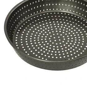 - Designed with perforations to allow air circulation during baking, resulting to a crispier crust