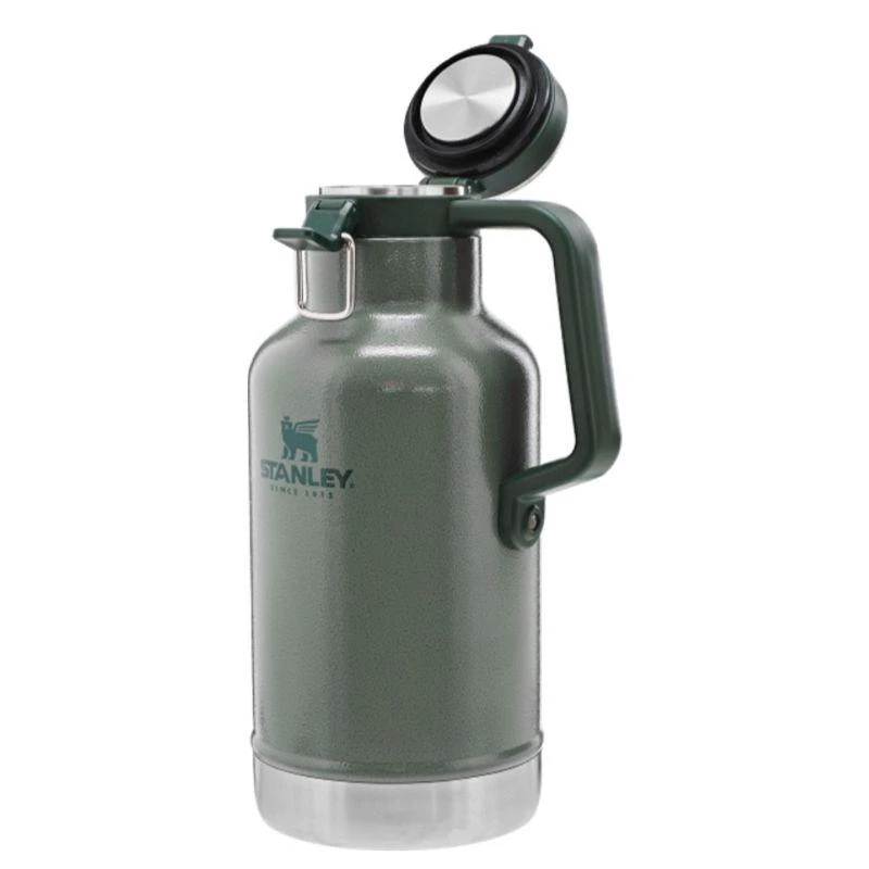 Keep your beer fresh and crisp for extended periods by storing it in the Stanley Classic Easy Pour Beer Growler in Hammertone green. Designed with a leak-proof, clip-top seal, this durable growler works to preserve carbonation. Made from food-grade stainless steel, it also boosts strength and purity and ensures the right flavor of your beverage at all times.