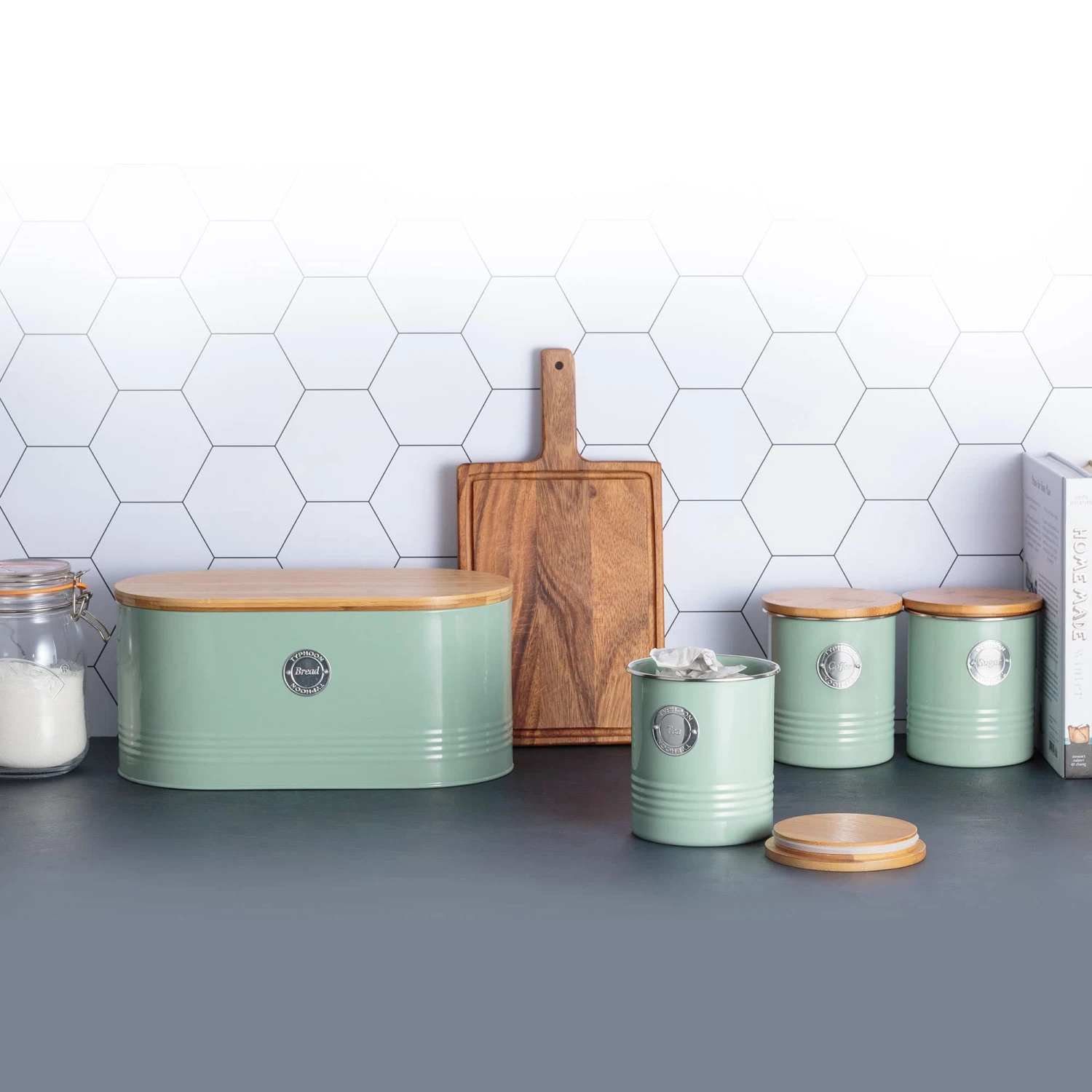 - Fill your counter with other matching storage pieces from theTyphoon Living Sage collection