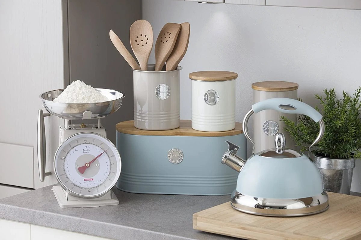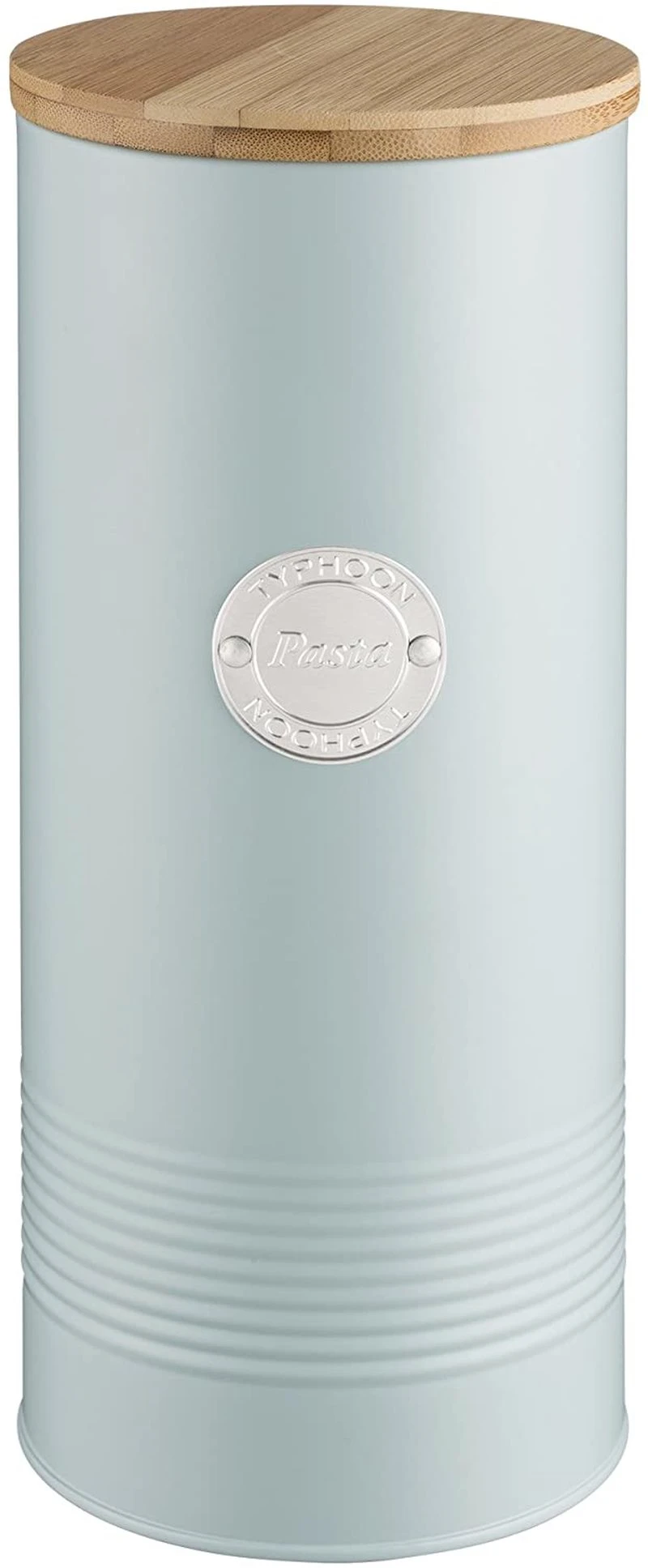 Pasta canister from the Typhoon living collection is perfect for storing your pasta, spaghetti, noodles, and other kitchen essentials. Generous capacity but also compact enough to fit within crowded cupboards. Its stylish design with a branded silver badge and looks great on kitchen countertops. Bamboo wood lid sourced from carefully selected, sustainable forestry. The canister is crafted from high-quality, powder-coated steel and features seamless construction for added robustness. Capacity: 2.5 liters. Available in blue color.