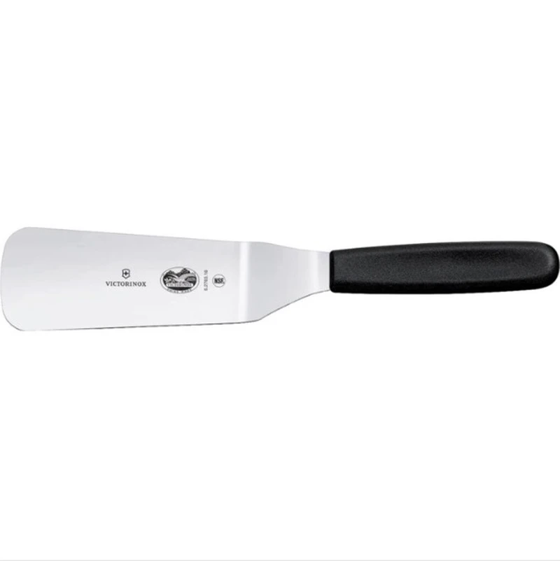 Victorinox Offset Spatula Knife is a slip-resistant, ergonomic handle that provides the control you crave when spreading filling or frosting a cake, while the flexible blade gives you the maneuverability you need for smooth, even coverage. The handle is made of polypropylene materials. The blade is made of high carbon stainless steel with a mirrored polish finish. The blade length is 16 cm and 12 cm spreader length.